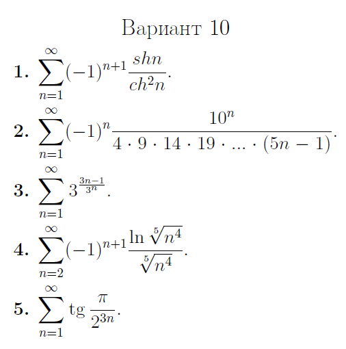 ДЗ 3.1: Числовые ряды вариант 10