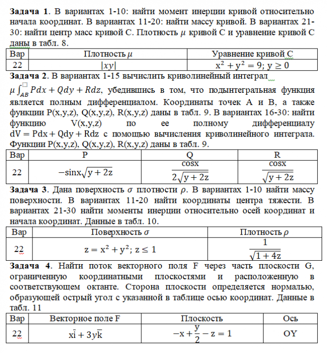 ДЗ 2: Криволинейные и поверхностные интегралы вариант 22