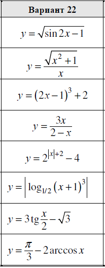 ДЗ 1.1: Элементарные функции и их графики вариант 22
