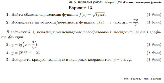 Вариант 13 - ДЗ №1 "Элементарные функции и их графики"