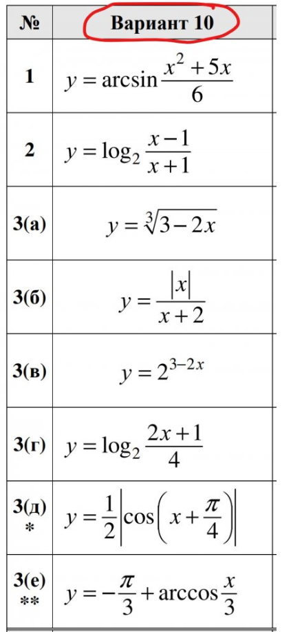 Вариант 10 - ДЗ №1 "Элементарные функции и их графики"