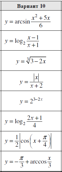 ДЗ 1.1: Элементарные функции и их графики вариант 10