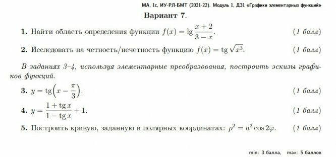 В файле очень аккуратно выполненное ДЗ-1 Графики элементарных функций для 7 варианта факультетов ИУ РЛ БМТ. Подробно расписано. Красивый почерк. Условие ниже