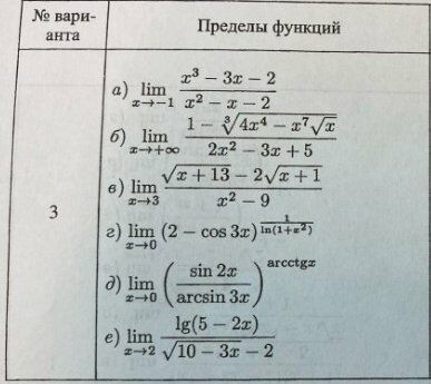 ДЗ 1.2: Пределы и непрерывность функций вариант 3