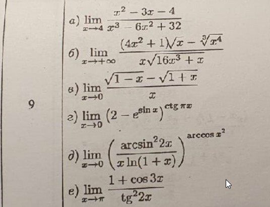ДЗ 1.2: Пределы и непрерывность функций вариант 9