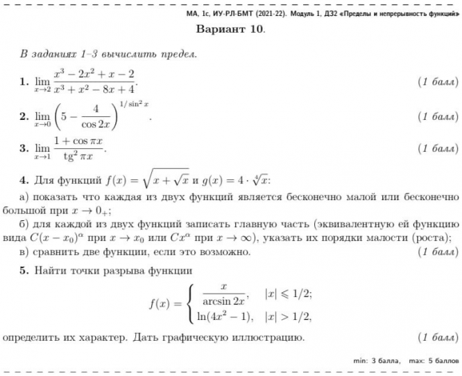 ДЗ 2: Пределы и непрерывность функций вариант 10