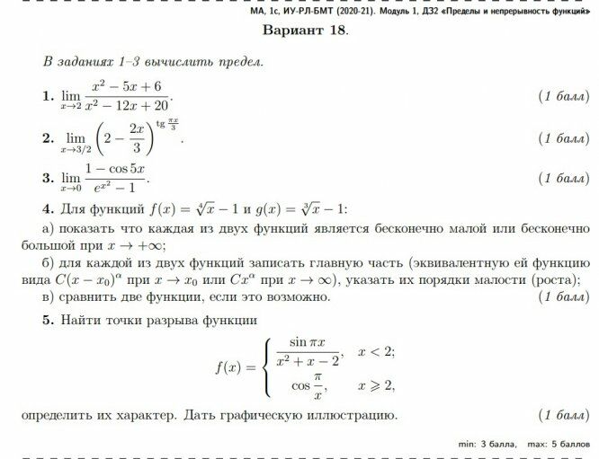 ДЗ 2: Пределы и непрерывность функций вариант 18