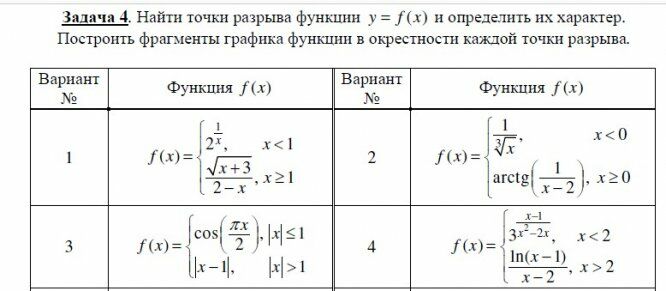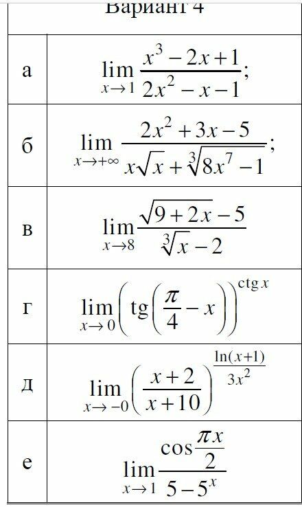 ДЗ 1.2: Пределы и непрерывность функций вариант 4