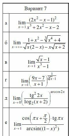 ДЗ 1.2: Пределы и непрерывность функций вариант 7