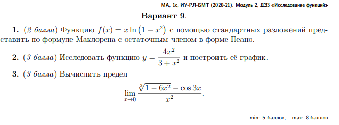 Типовой расчет по математическому анализу №3 "Исследование функций", 3 задачи, зачтено