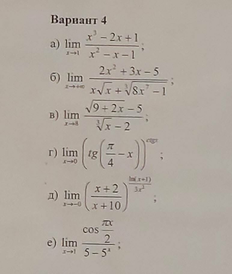 ДЗ 1.2: Пределы и непрерывность функций вариант 4