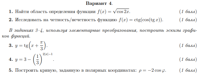 Вариант 4 - ДЗ №1 "Элементарные функции и их графики"
