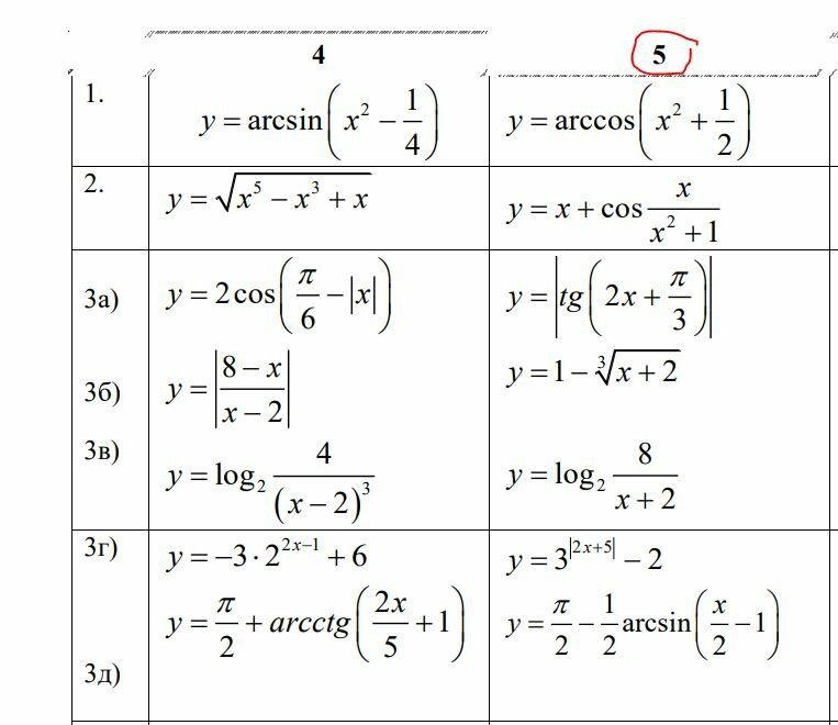 ДЗ 1.1: Элементарные функции и их графики вариант 5