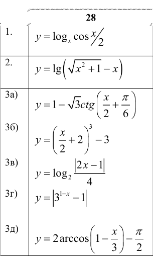 ДЗ 1.1: Элементарные функции и их графики вариант 28