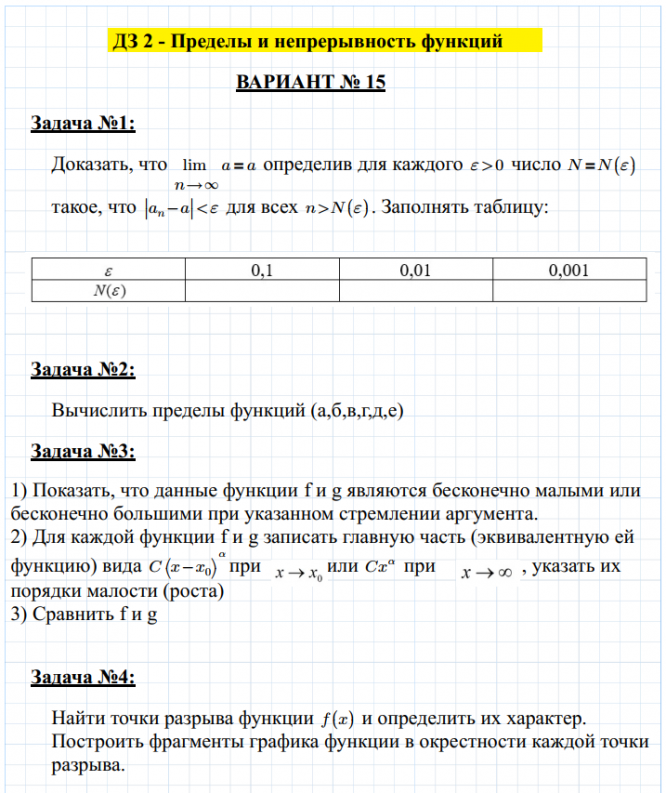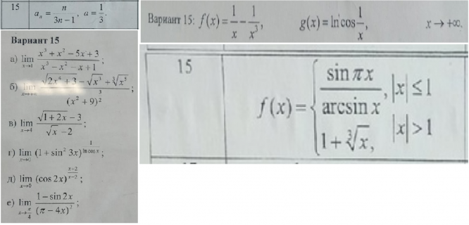 ДЗ 1.2: Пределы и непрерывность функций вариант 15