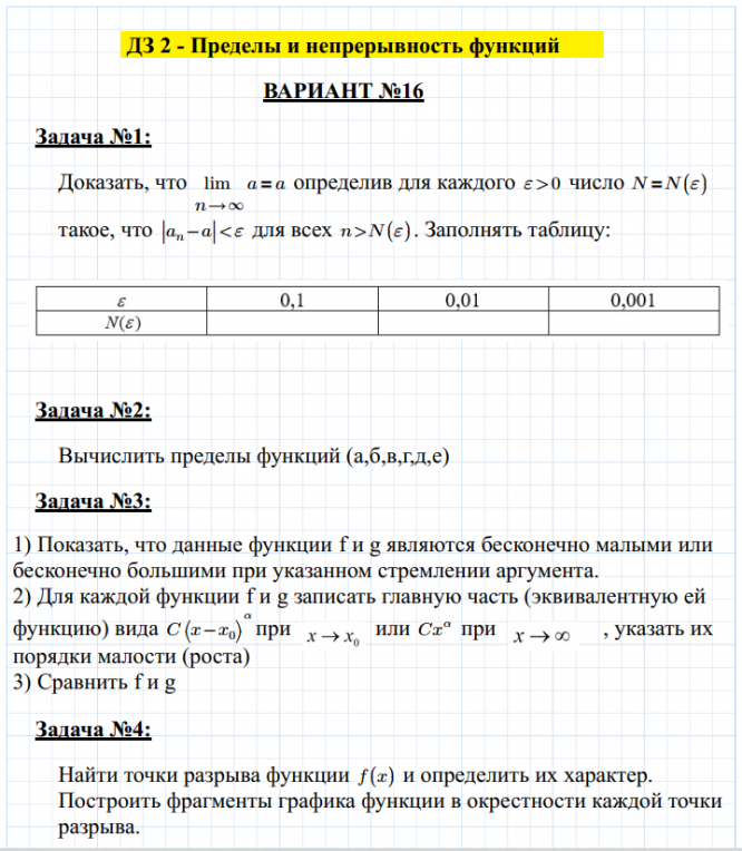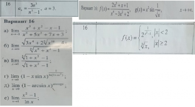 ДЗ 1.2: Пределы и непрерывность функций вариант 16