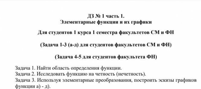 Вариант 1 - ДЗ №1 - Элементарные функции и их графики - ФН2