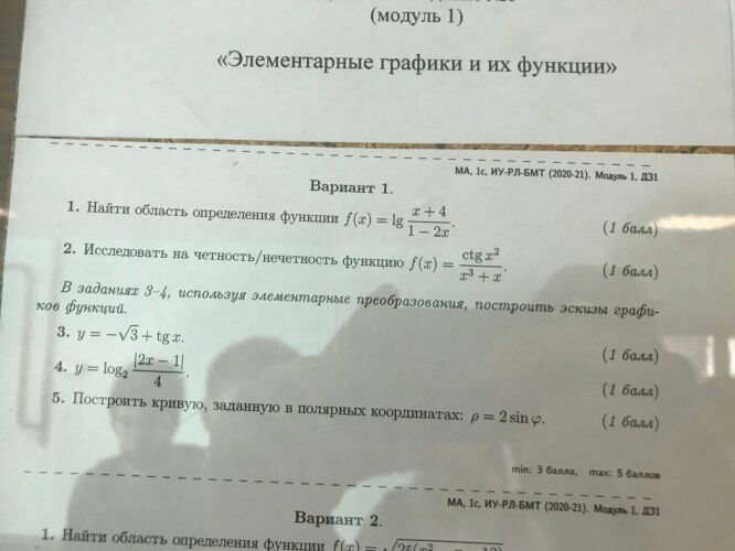 Вариант 1 - ДЗ №1 - Элементарные функции и их графики - ФН12