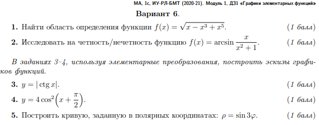 Вариант 5 - ДЗ №1 "Элементарные функции и их графики"