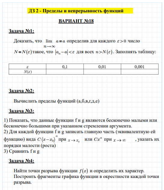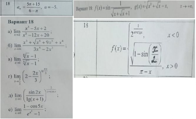 ДЗ 1.2: Пределы и непрерывность функций вариант 18