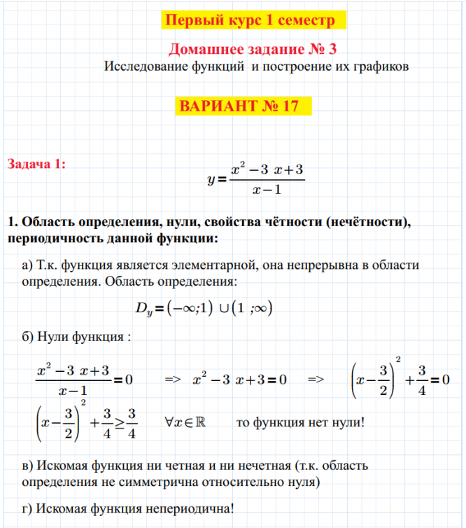 ДЗ 3: Исследование функций и построение их графиков вариант 17