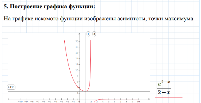 - Графики построены шаг за шагом (Step by step) с подробными объяснениями ( 5 шагов: (1) Область определения, нули, четность, периодичность - (2) Асимптоты - (3) Интервалы возрастания, убывания функции. Точки экстремума - (4) Выпуклости вверх (вниз).Точки перегиба - (5) Построение графика)
