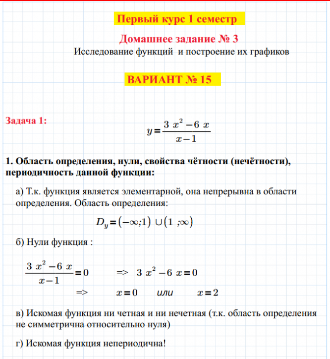 Для студентов МГТУ им. Н.Э.Баумана по предмету Математический анализИсследование функций и построение их графиковИсследование функций и построение их графиков