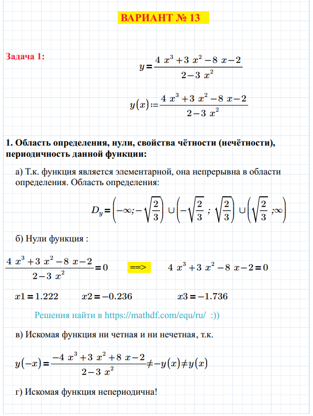 ДЗ 3: Исследование функций и построение их графиков вариант 13