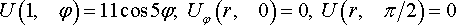 Решить задачу Дирихле для уравнения Лапласа ΔU = 0 в круге 0 ≤ r < 1, 0 ≤ ϕ < 2π (r, ϕ – полярные координаты), на границе которого искомая функция U(r, ϕ) имеет следующие значения: