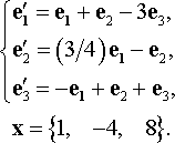 Найти координаты вектора X в базисе (e'1, e'2, e'3), если он задан в базисе (e1, e2, e3):