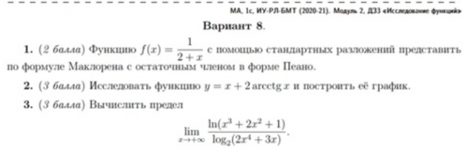 Домашнее задание по матан МГТУ 1 семестр типовик, пределы, исследование функций, дифференциальное.