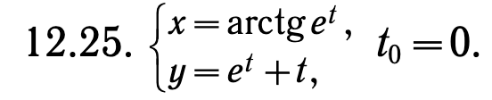 Задача 12. Составить уравнение касательной и нормали к кривой, заданной параметрически, в точке, соответствующей значению параметра t0.