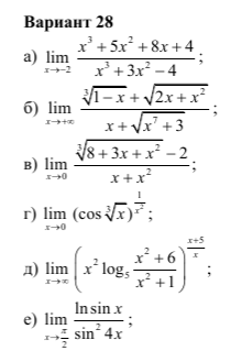 ДЗ 1.2: Пределы и непрерывность функций вариант 28