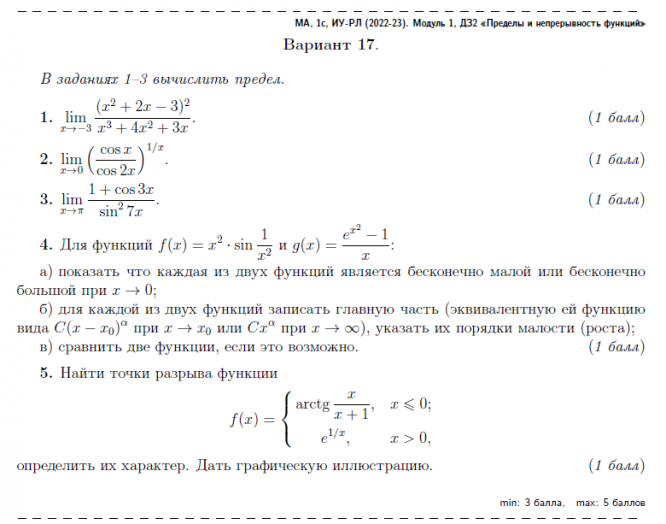 ДЗ 2: Пределы и непрерывность функций вариант 17