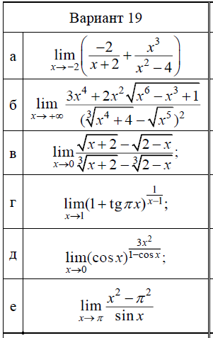 ДЗ 1.2: Пределы и непрерывность функций вариант 19