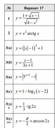 ДЗ 1.1: Элементарные функции и их графики вариант 17