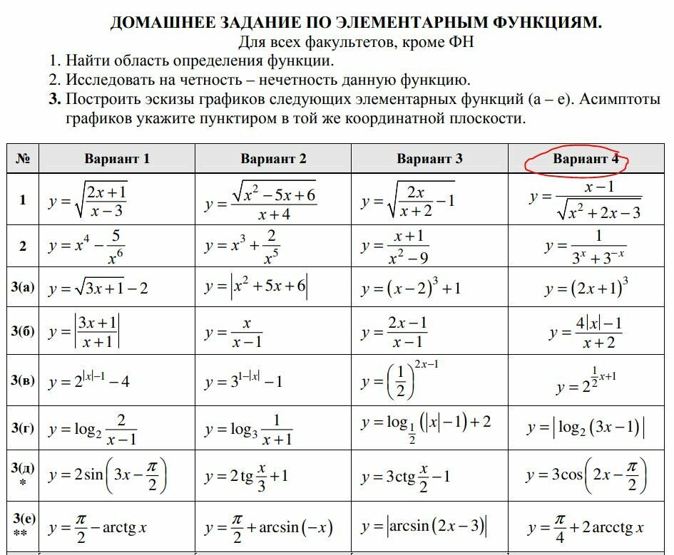 ДЗ 1.1: Элементарные функции и их графики вариант 4