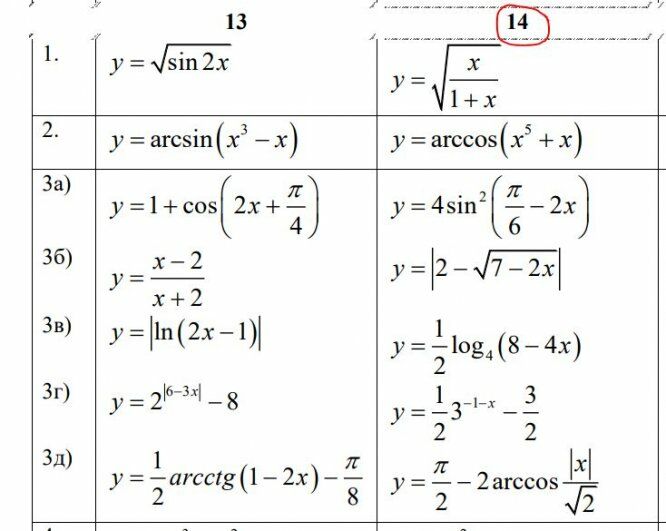 ДЗ 1.1: Элементарные функции и их графики вариант 14