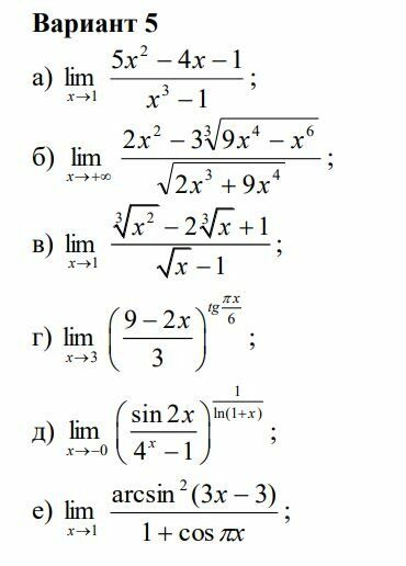 ДЗ 1.2: Пределы и непрерывность функций вариант 5