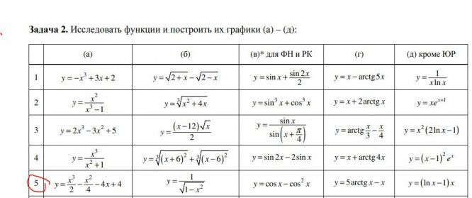 Вариант 5 - ДЗ №2 - Приложения дифференциального исчисления - МТ,РК,ИБМ,Э5,ФН1