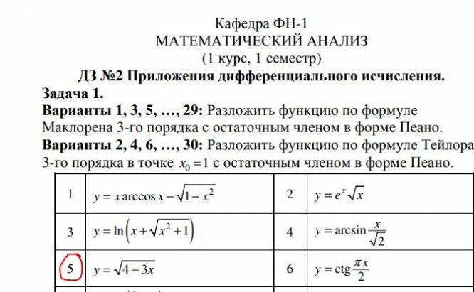Вариант 5 - ДЗ №2 - Приложения дифференциального исчисления - ФН1.pdf