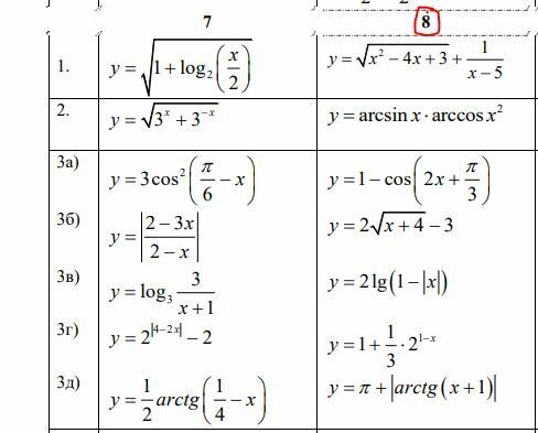 ДЗ 1.1: Элементарные функции и их графики вариант 8