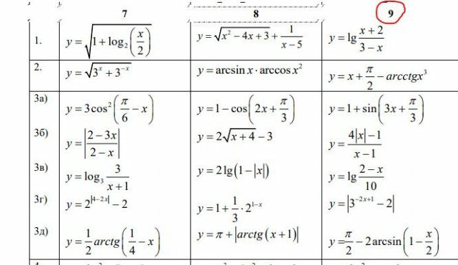 ДЗ 1.1: Элементарные функции и их графики вариант 9