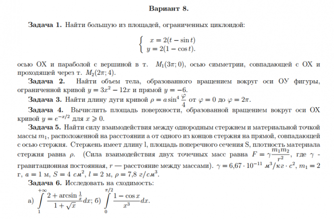 ДЗ 1: Приложение определенного интеграла вариант 8