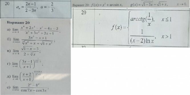 ДЗ 1.2: Пределы и непрерывность функций вариант 20