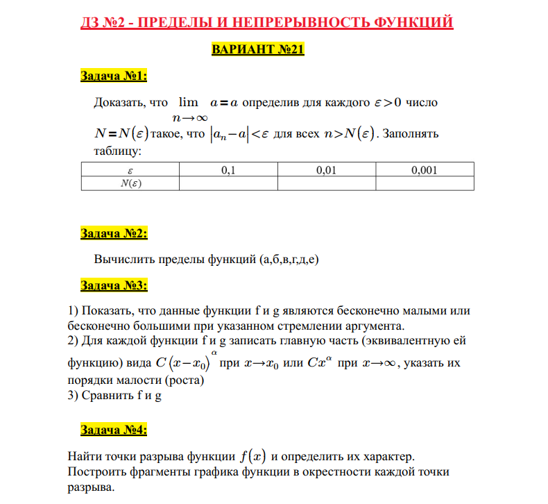 ДЗ 1.2: Пределы и непрерывность функций вариант 21