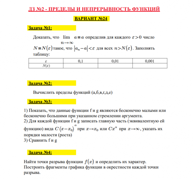 ДЗ 1.2: Пределы и непрерывность функций вариант 24