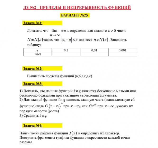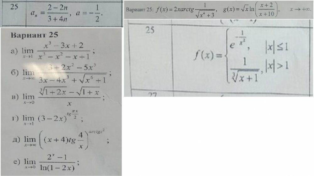 ДЗ 1.2: Пределы и непрерывность функций вариант 25