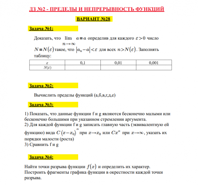 ДЗ 1.2: Пределы и непрерывность функций вариант 28