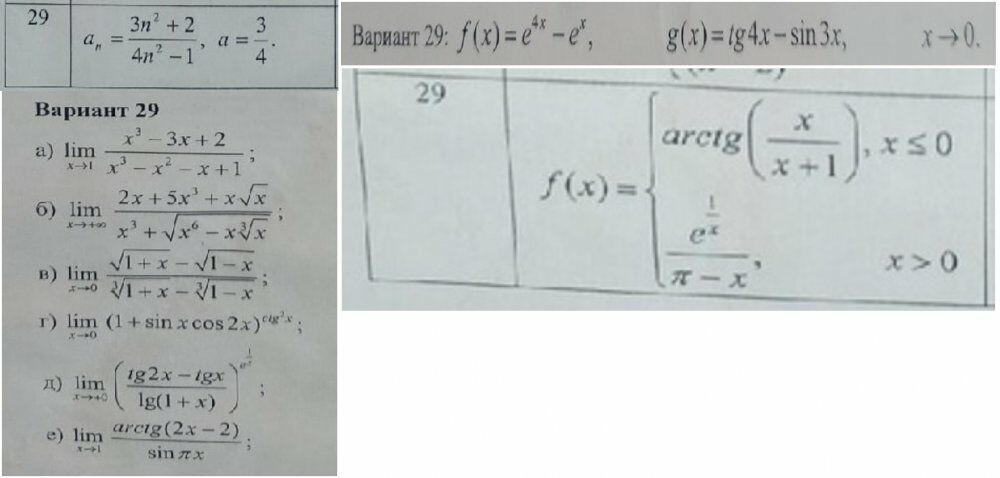 ДЗ 1.2: Пределы и непрерывность функций вариант 29